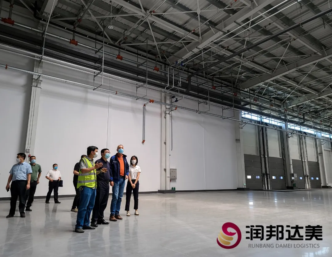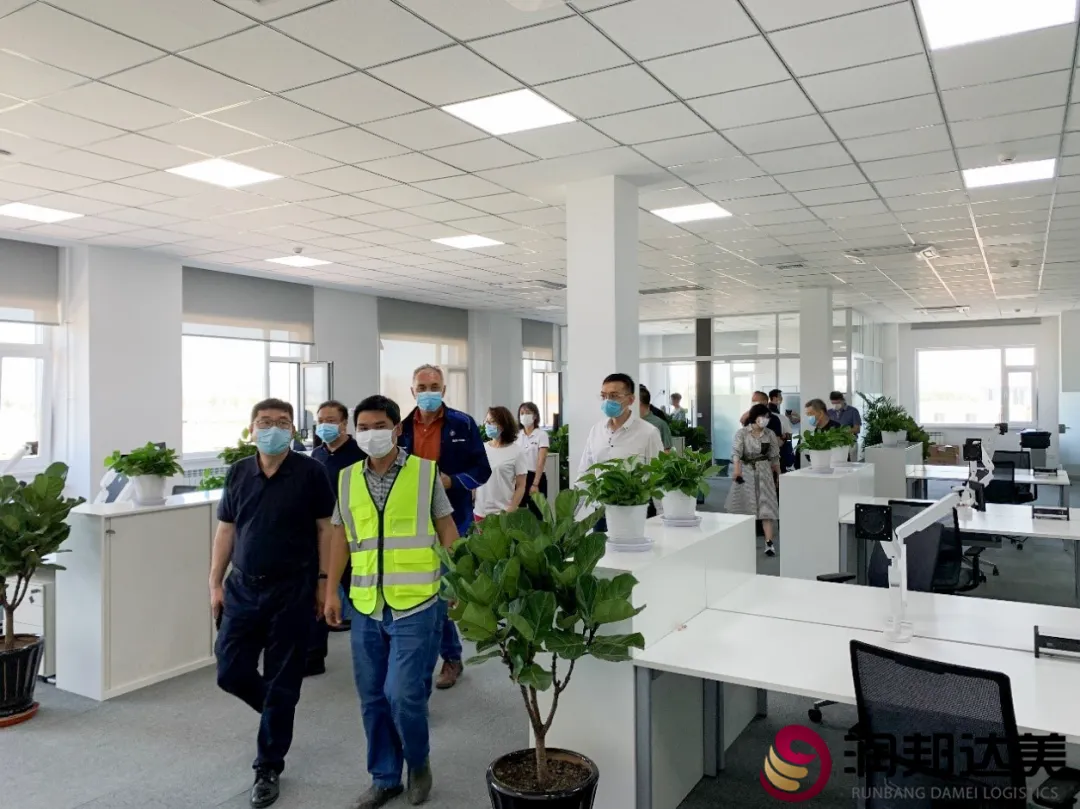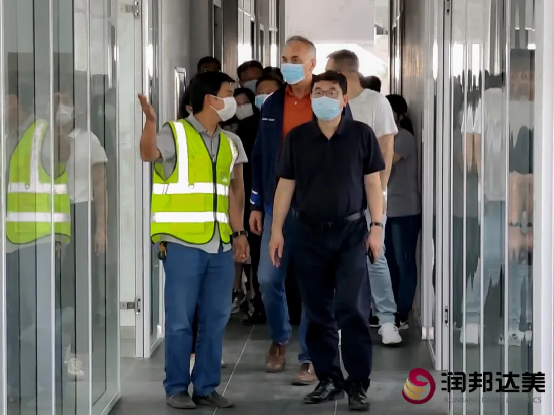 The leaders visited the office area and the warehouse area. During the visit, Director Guo Zhongxiao carefully learned about the progress of the project construction and the problems that needed to be solved before the operation. He expressed his appreciation for Runbangdamei's successful completion of the BMW China Logistics Distribution Center with high speed, high quality and high standards.